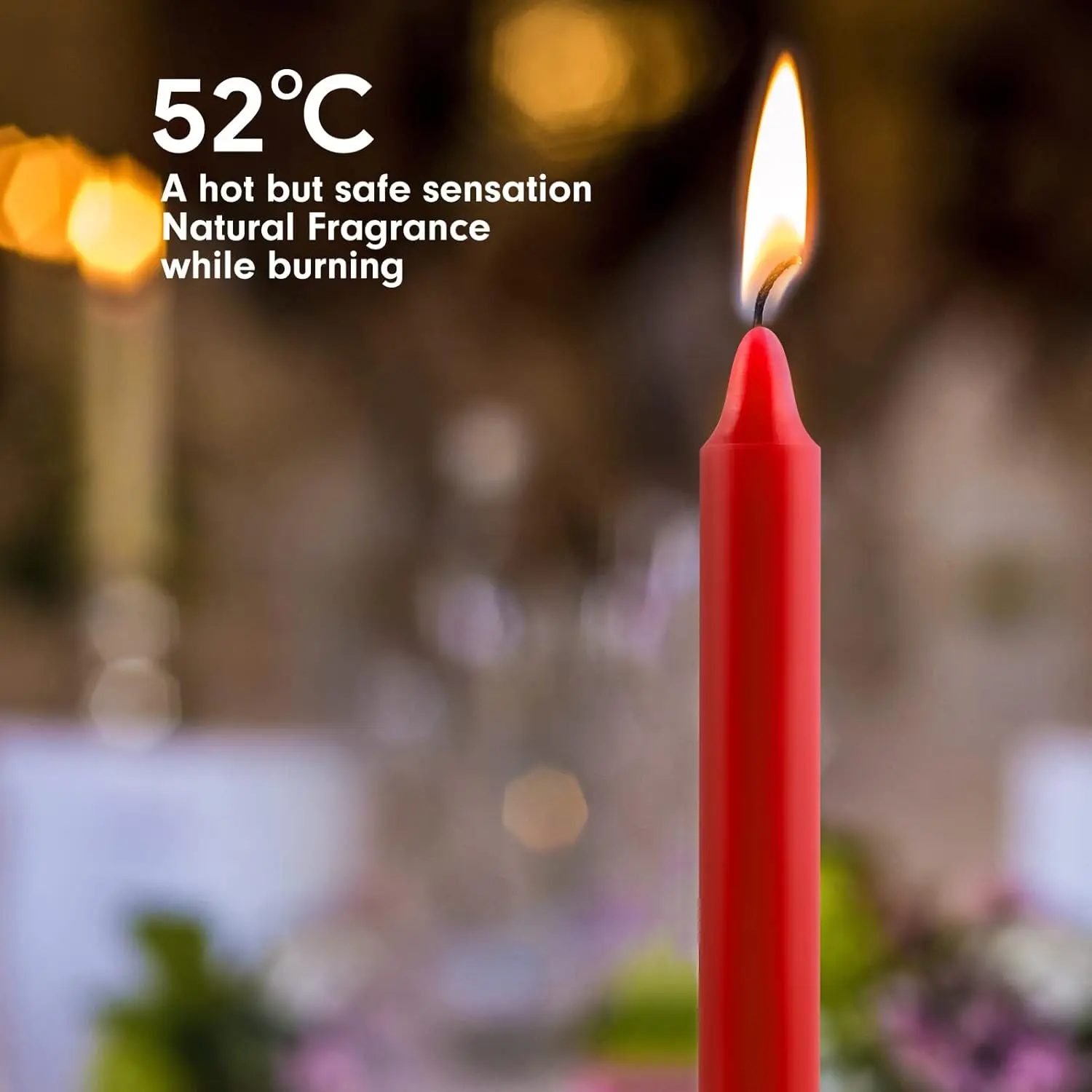 Warm Notice: The candle's burning temperature is 118.4 to 122 Fahrenheit, about 50 celsius, which burns still a little hot. Please DO NOT drip straightly to skin avoiding get burned.